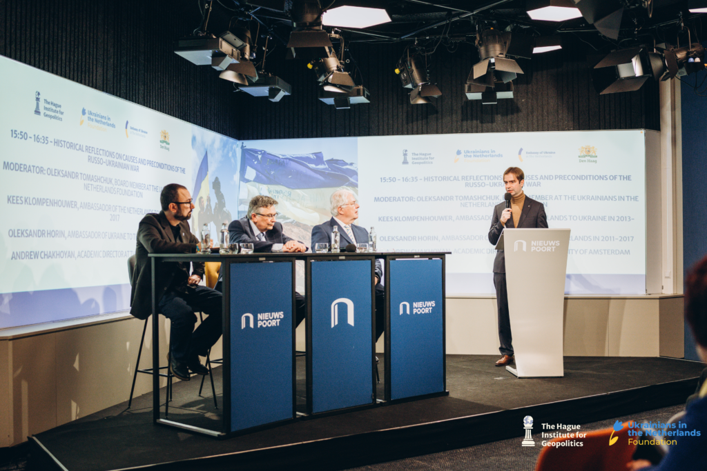 The event featured two panel discussions. The first examined the historical and ideological roots of Russia’s aggression and was moderated by Oleksandr Tomashchuk, Board member of the Foundation “Ukrainians in the Netherlands”.  Panellists Andrew Chakhoyan (academic director at the University of Amsterdam), Oleksandr Horin (Ambassador of Ukraine to the Netherlands in 2011-2017) and Kees Klompenhouwer (Ambassador of the Netherlands to Ukraine in 2013-2017) argued that the war reflects long-standing imperial logic rather than a single policy decision, that it is fundamentally about Ukraine’s sovereign right to determine its own foreign policy course. The speakers also noted that the delayed international response following 2014 enabled further escalation.