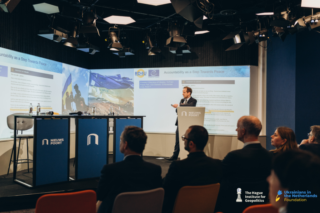 On 24 February 2026, the Hague Institute for Geopolitics, together with the Ukrainians in the Netherlands Foundation, marked four years since the start of Russia’s full-scale invasion by hosting a high-level conference in The Hague: “Four Years of the Full-Scale War in Ukraine: Causes, Consequences and Paths to Peace.” Together with senior policymakers, diplomats, security experts, academics and civil society representatives, we examined the roots of the conflict and the conditions for a sustainable peace. The event was supported by the Municipality of The Hague and the Embassy of Ukraine in the Kingdom of the Netherlands