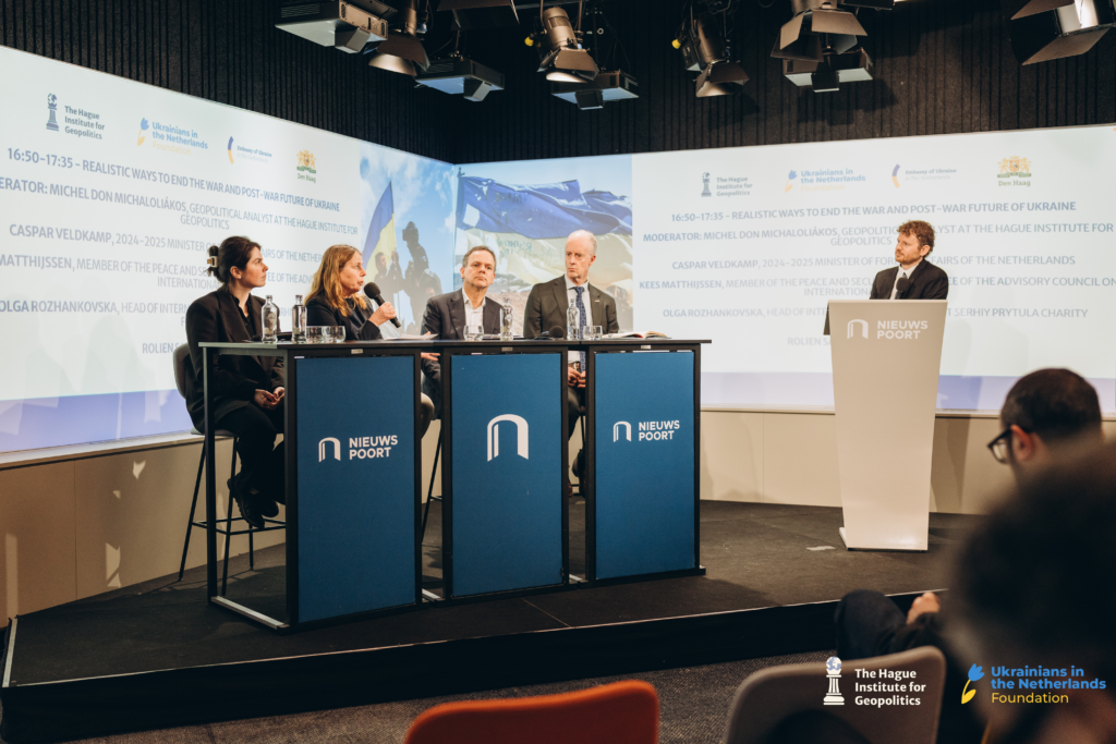 The second panel was moderated by Michel Don Michaloliákos (Founder and Geopolitical Analyst at HIG), and featured Caspar Veldkamp (former Dutch Foreign Minister), Kees Matthijssen (Member of the Peace and Security Committee of the Advisory Council on International Affairs), Olga Rozhankovska (Head of International Relations at Serhiy Prytula Charity Foundation) and Rolien Sasse (Director of PAX). The panel discussed present realities and future pathways, including the international support, particularly air defence, and the challenge of reconstruction, including infrastructure, displacement, trauma and reintegration